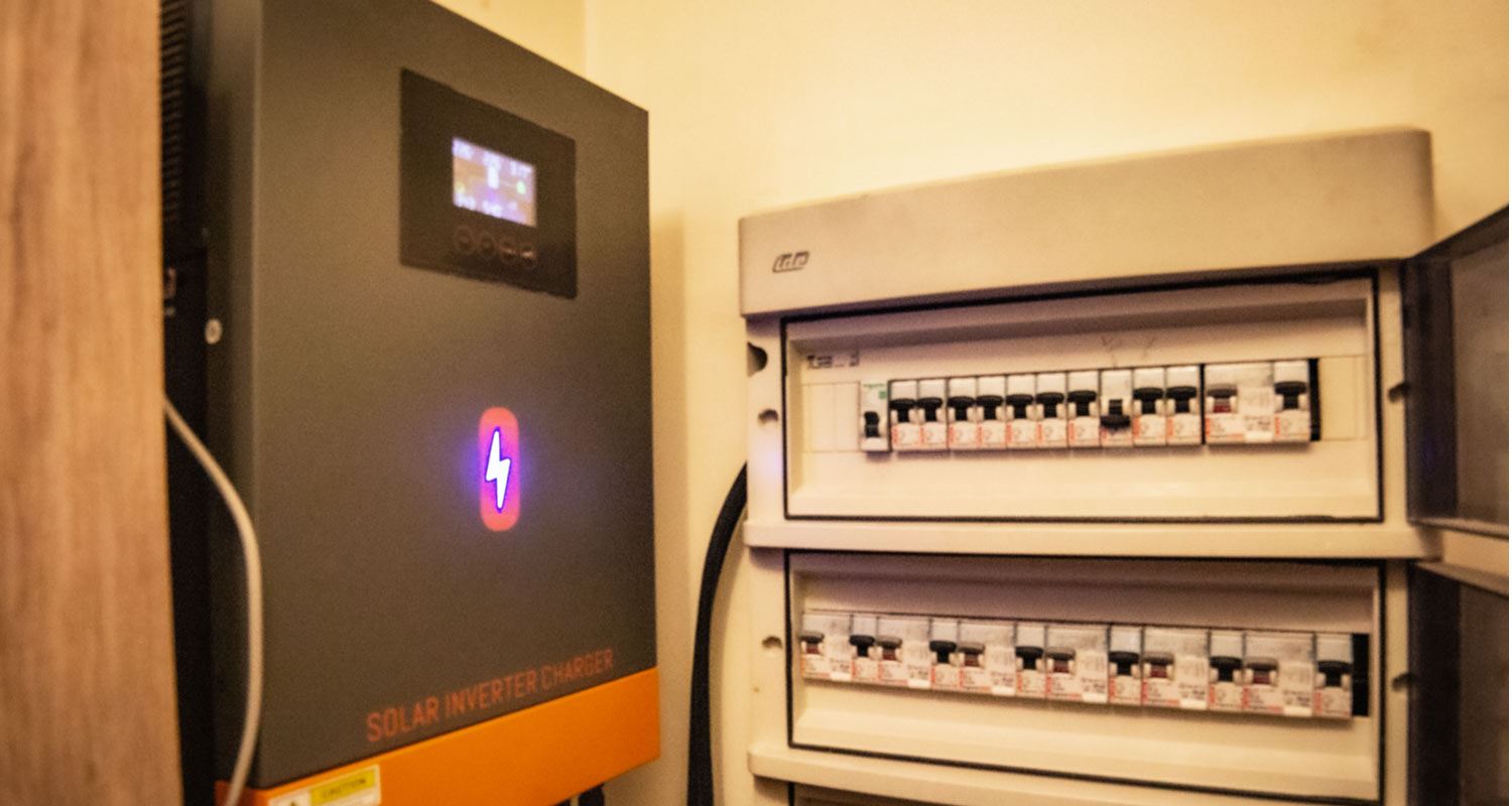 - 8 paneles solares de 500 W ( 4.000 W ) + inversor-cargador ( offgrid y ongrid) de 6 KW/H + banco de baterías de 200 Ah de 48 volts.